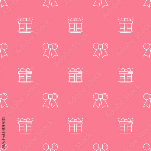 Christmas New Year seamless pattern gift box with ribbon. Holiday background. Christmas present, giftbox. Xmas winter trendy decoration. Festive texture. Line vector illustration. Wrapping gift paper.