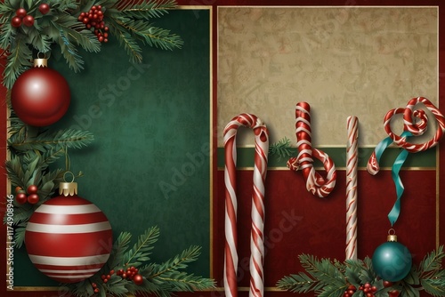 christmas, ornament, candy cane, greenery, holiday, festive, winter, decoration, red, green, sweet, celebration, background, ornament, candy cane, design, decorative