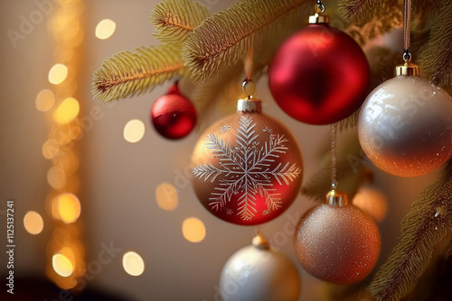 christmas, decoration, ball, holiday, ornament, celebration, tree, christmas, winter, gold, bauble, tree branch, season, glasses, object, sphere, hanging, bauble, red, colours, new, year, pine, shiny, vector