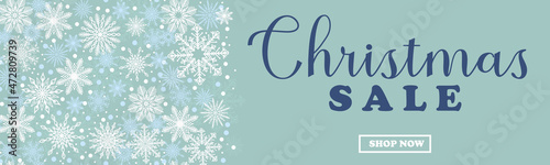 christmas, sale, banner, promotion, background, discount, shop, now, buttons, web, winter, design, horizontal, long, elegant, beautiful, blue, white, cursive, snow, snowflake, border, dot, hand-drawn, silhouette, vector, illustration, poster, flier, marketing, shopping, christmas, holiday, merry, season, offer, new year, gift, advertising, special, template, clearance