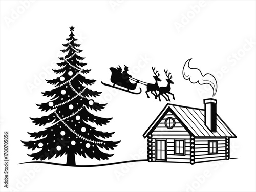 Christmas silhouette black vector white background