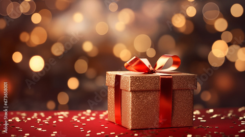 Christmas Surprise Awaits: Wrapped Gift Box with Ribbon.