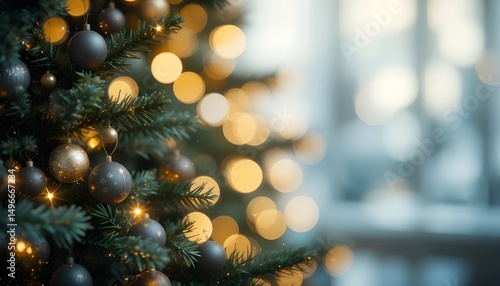 "Christmas Tree Background with Gold Blurred Lights – Festive Holiday Design"