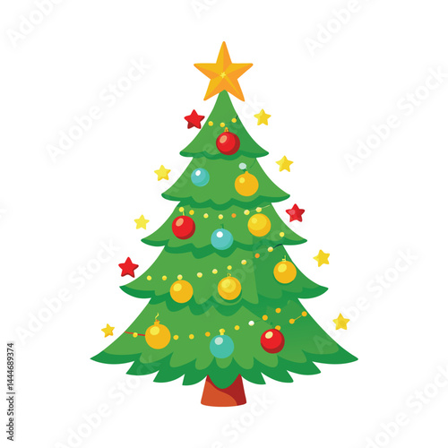christmas, tree, decoration, holiday, christmas tree, christmas, celebration, star, fir, ball, winter, gift, pine, illustration, green, season, year, new, vector, isolated, ornament, present, new year, december, spruce