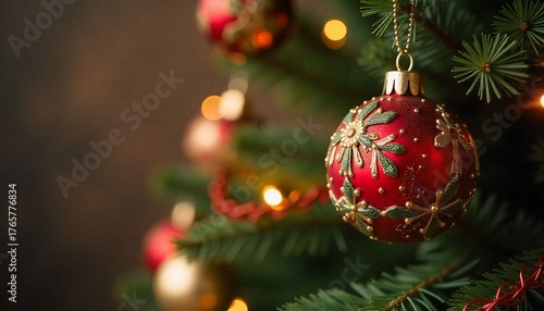 christmas, tree, decoration, ball, holiday, christmas, celebration, ornament, tree branch, gold, winter, christmas tree, pine, green, season, glasses, fir, new year, new, december, red