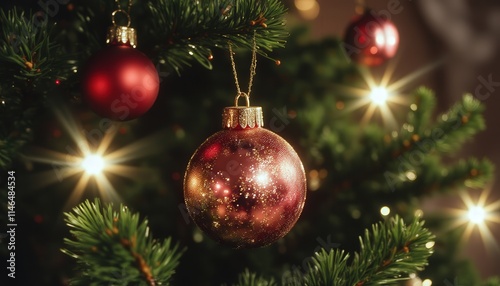 christmas, tree, ball, decoration, holiday, tree branch, ornament, celebration, christmas, pine, winter, fir, season, green, gold, glasses, bauble, sphere, new, christmas tree, new year, december, hanging, red, decor