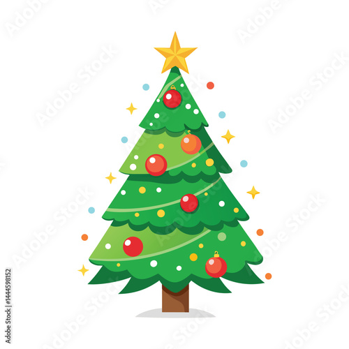 christmas, tree, decoration, holiday, christmas tree, christmas, celebration, star, fir, ball, winter, gift, pine, illustration, green, season, year, new, vector, isolated, ornament, present, new year, december, spruce