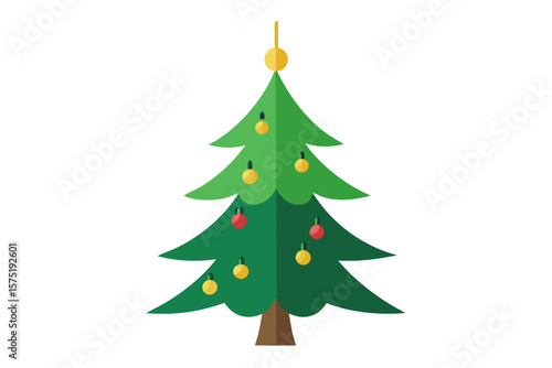 christmas, tree, holiday, decoration, christmas tree, fir, christmas, winter, celebration, star, pine, ball, green, season, gift, year, illustration, new year, vector, new, december, merry, ornament, isolated, present