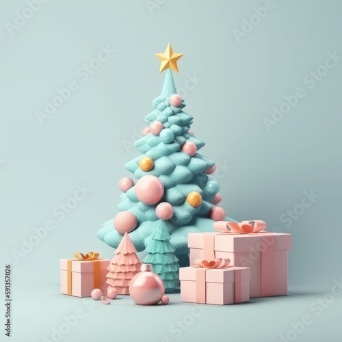 Christmas tree. Merry christmas and happy new year festive background. Christmas 3d cartoon design. Bright greeting card, poster, banner. generative ai