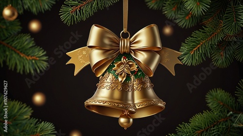 gold, bell, christmas, ornament, shiny, celebration, decoration, holiday, jingle, tree, winter, ribbon, december, year, new, festive, merry, bow, object, red, tree branch, season, light, seasonal, hanging, gift, pine, decor, design, fir, traditional, atmosphere, bokeh, cosy, gathering, goggles, holly, joy, magic, sparkle, sphere, spirit, warmth, ball, classic, glimmer, twinkling, 2025, ambience