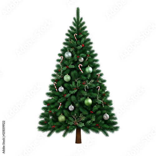 Christmas, tree, ornaments, lights, star, Santa, hat, holly, snow, bell, candy cane, ribbon, bow, stocking, wreath, gingerbread, snowman, gifts, snowflake, on white background