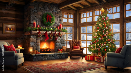 christmas, tree, fireplace, room, decoration, christmas tree, light, home, holiday, christmas, interior, house, window, fire, winter, celebration, religion, present, light, decoration, architecture, santa, night, gift, holiday