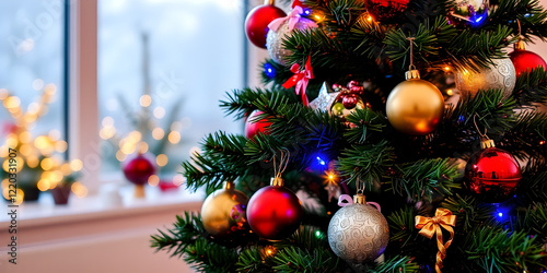 christmas, tree, decoration, ball, holiday, christmas, celebration, ornament, winter, fir, tree branch, gold, pine, green, new, christmas tree, season, december, year, glasses, red, new year, decoration, bauble, ornament, horizontal, photo, christmas lights, no people, background, shiny, illuminated, lifestyle, living room, ornate, tradition, alone, atmosphere, awe, boy, colours, concept, decorate, defocused, elegance, festive