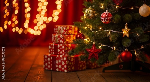christmas, tree, gift, light, present, decoration, holiday, winter, season, celebration