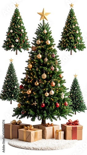 christmas, tree, holiday, decor, ornament, gift, present, decoration, christmas, festive, celebration, family, home, winter, decorating, artificial, light, ball, top, gift, red, gold, green, cardboard, beautiful