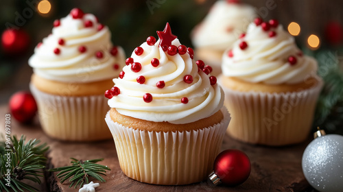 christmas, christmas, vanilla, cupcake, cupcake, sprinkle, sprinkle, cake, dessert, food, baked, icing, sweet, chocolate, frosting, cream, snack, cup, muffin, delicious, celebration, muffin, decoration, pastry, decorated, party
