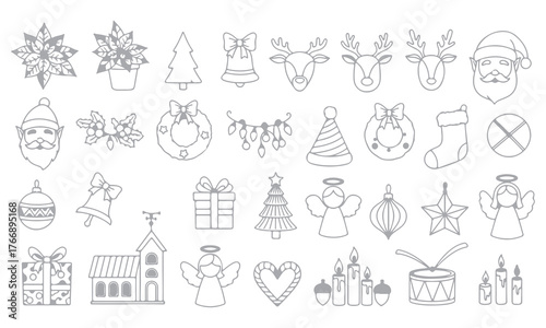 Christmas Vector Elements collection featuring festive icons such as Santa, reindeer, snowman, trees, gifts, and ornaments. Perfect for holiday cards, posters, invitations, and seasonal design project