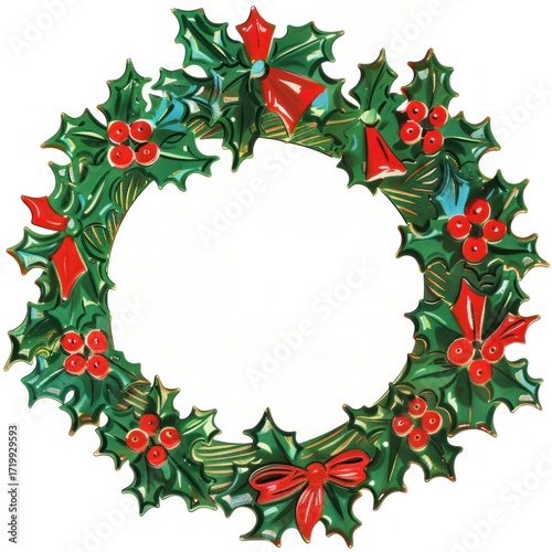 christmas, chaplet, decor, cartoon, collage, vintage, cute, art, leaf, background, ornament, retro, colours, winter, green, red, set, christmas decoration, christmas ornament, realistic, artwork, digital, foliage, berry, detailed, festive, holiday, vibrant, clean, holly, solid, style, season, hand-drawn, isolated, center, clear, clip art, red berry, festive season