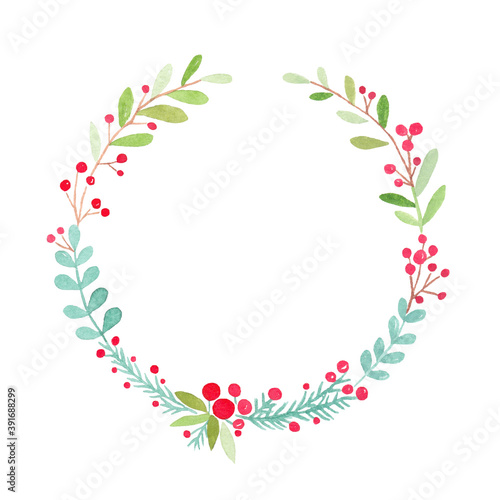christmas, chaplet, watercolor, watercolor, illustration, isolated, frame, invitation, holiday, background, card, christmas, red, green, design, holly, tree, year, winter, new, hand, white, mistletoe, decoration, celebration, round, greeting, drawn, tree branch, art, season, berry, postcard, painting, nature, leaf, floral, water, colours