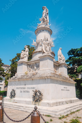 genoa, italy, italian, city, landmark, historical building, christopher, columbus, piazza, square, stone, marble, statue, sculpture, sculptural, group, allegory, allegoric, distinguished, public, figure, architecture, structure, commemorative, commemoration, honour, honoring, remembrance, old, town, history, historic, europa, european, tour tourism, holiday maker, neoclassic, urban, place, travel, destination, summer, day, sunny, outdoors