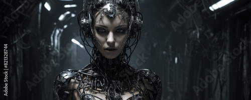 cibernetic woman with a mask, female robot, artificial intelligence, dark side