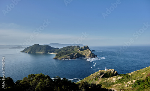 island, sea, view, atlantic, ocean, blue, galicia, lighthouse, nature reserve, green, cliff, coast, travel, vacation, outdoors, paradise, vigo, estuary, landscape, land, water, spain, europa, european, mediterranean, nobody, natural, environment, sustainability, tour tourism, ecosystem, protected, environmental, destination, south island, background, copy space, summer, viewpoint, scenic