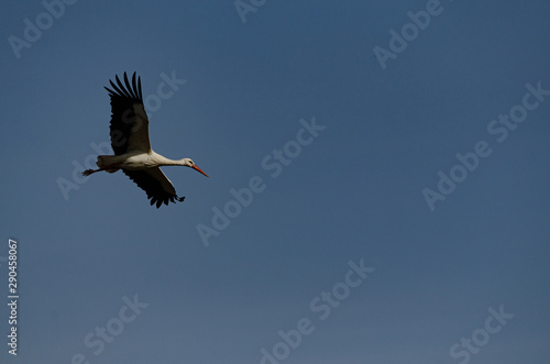 Cigueña volando enla comarca de A Limia, Ourense. Galicia, España.