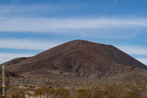 Cinder Cone / Scoria Cone with Lava Flow. Cima volcanic field. Kelbaker Road, Mojave National Preserve. San Bernardino County, California. Mojave Desert / Basin and Range Province.