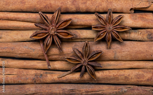 anise, aroma, aromatic, background, brown, christmas, cinnamon, closeup, condiment, cooking, decoration, dry, flat, favor, food, epicure, herb, ingredient, lay, macro, natural, nature, pattern, seasoning, seed, spice, star, stick, table, top, up, view, wood, wooden
