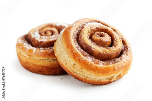Cinnamon Roll, A sweet roll made from dough flavored with cinnamon and sugar, often topped with a cream cheese or glaze icing. Isolated on White Background