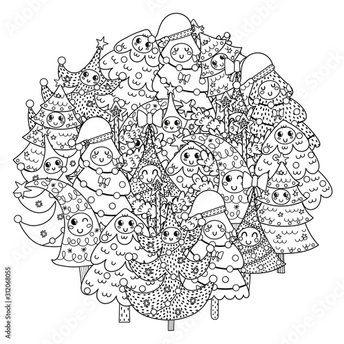 christmas, colouring, page, book, colouring, tree, christmas tree, black, white, circle, round, shape, mandala, cute, funny, character, pine, vector, illustration, outline, line, monochrome, december, holiday, print, background, children, children, art, doodle, drawing, adult, design, activity, happy, graphic, ball, magic, forest, fir, cartoon, isolated, new year, christmas, card