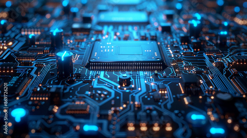 Circuit board blue theme semiconducter technology AI
