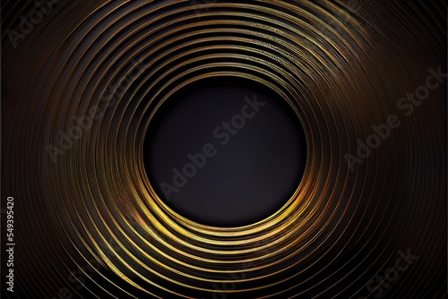 circular abstract black metal background, a circular object with a hole in it, illustration with line symmetry