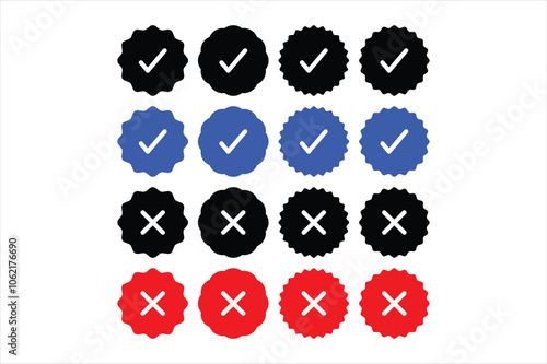 Circular labels check and cross marks collection set vector