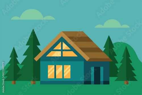 house, home, vector, illustration, nature, sky, landscape, building, cartoon, tree, summer, grass, roof, architecture, estate, village, real, design, bungalow, window, field, sun, cloud, garden, cloud