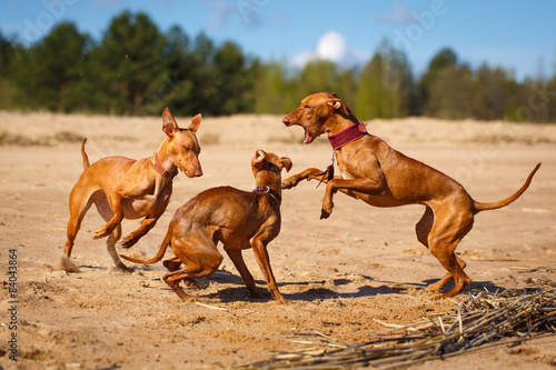 etna, dog, hound, pet, animal, red, nature, summer, beach, sand, sky, blue, activity