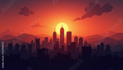 city, skyline, sunset, silhouette, sky, city landscape, sunrise, building, sun, urban, architecture, downtown, vector, building, skyscraper, illustration, town, dusk, landscape, us, night, morning, cloud, travel, dawn