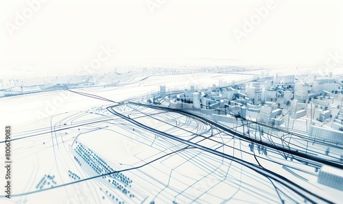 city map, transport infrastructure schemes, digital thin lines, geometric subtle elements, interface-like, white background