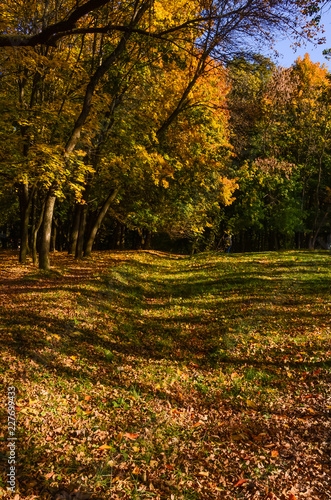 City park in the sunny day in the autumn season