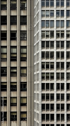 City skyscrapers, architectural detail, urban scene, window patterns, business district