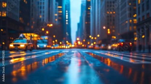 city, street, night, rain, reflections, urban, downtown, building, skyscraper, light, car, taxi, traffic, vibrant, bokeh, crosswalk, travel, city landscape, architecture, transportation, metropolitan, night scene, neon light, atmospheric, rainy, tied-up, bustling, lively, energetic, modern, cosmopolitan, urban scene, nightlife, city lights, road, vehicle, city landscape, motion blur, evening, illuminated, bustling, glow, timelapse, dynamic