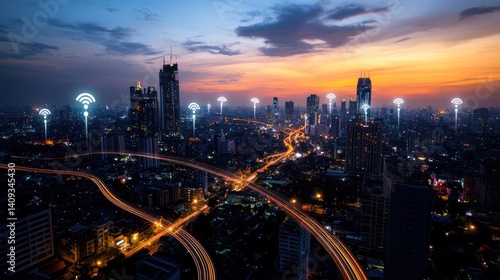 city landscape, twilight, wireless, network, technology, city, urban, cyberspace, connection, communication