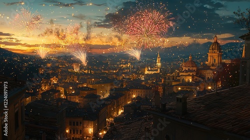 fireworks, city landscape, night, dusk, city, celebration, festival, light, building, architecture, evening, golden hour, spectacle, display, urban, summer, holiday, vibrant, colourful, sky, dark, illuminated, twilight, scene, view, panorama, majestic, magical, beauty, wonder, stunning, breathtaking, impressive, spectacular, gorgeous, beautiful, charming, picturesque, lovely, enchanting, delightful, captivating, mesmerizing, extraordinary, remarkable, unforgettable, memorable, joyous