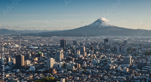 city landscape, aerial view, mountain, snow-capped, building, urban, sky, daytime, clear, architecture, horizon, landscape, city, travel, scenic, altitude, structure, cloud, panorama, residence, tower, district, housing, mountain chain, overlook, town, area, summit, peak, location, geographic, destination, nature, landmark