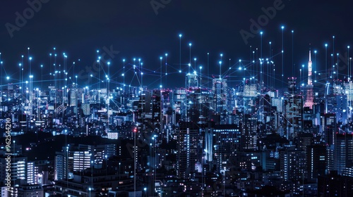 city landscape, night, building, network, connection, light, skyscraper, urban, technology, digital, communication, modern, futuristic, global, connectivity, datum, cyberspace, wireless, infrastructure, illumination, metropolis, skyline, abstract, architecture, city, dense, horizon, illuminated, glow, dark, aerial, view, panorama, urbanism, city landscape, tower block, structure, nightlife
