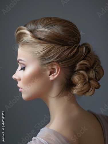 braided, updo, blond, subtile, make-up, classic, coiffure, model, style, elegance, beauty, salon, chic, hair care, cosmetology, fashion, grooming, coiffure, feminine, neat, professional, sophisticated, trendy, care, artistic, hairstylist, portrait, woman, glamour, poised, beautician, creative, modern, haircut, attractive, detailed, studio, timeless