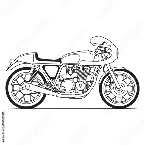 Classic Cafe Racer Motorcycle Line Drawing Black and White Illustration