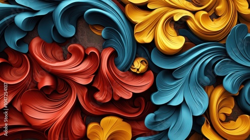 Classic European design, colorful 3D relief with vibrant, high-definition texture, artistic and modernized.