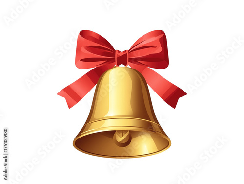 Classic golden bell with a vibrant red bow, perfect for holiday cards, festive decorations, and winter celebrations, creating a warm and joyful seasonal atmosphere