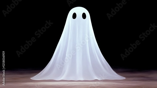 Classic Halloween Ghost Figure with White Sheet and Dark Background for Spooky Season Decoration
